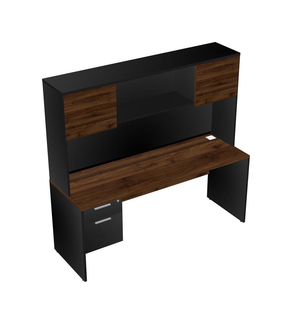 Columbia Walnut Rectangular Office Desk Plus Black Hanging Drawers And Black Hutch