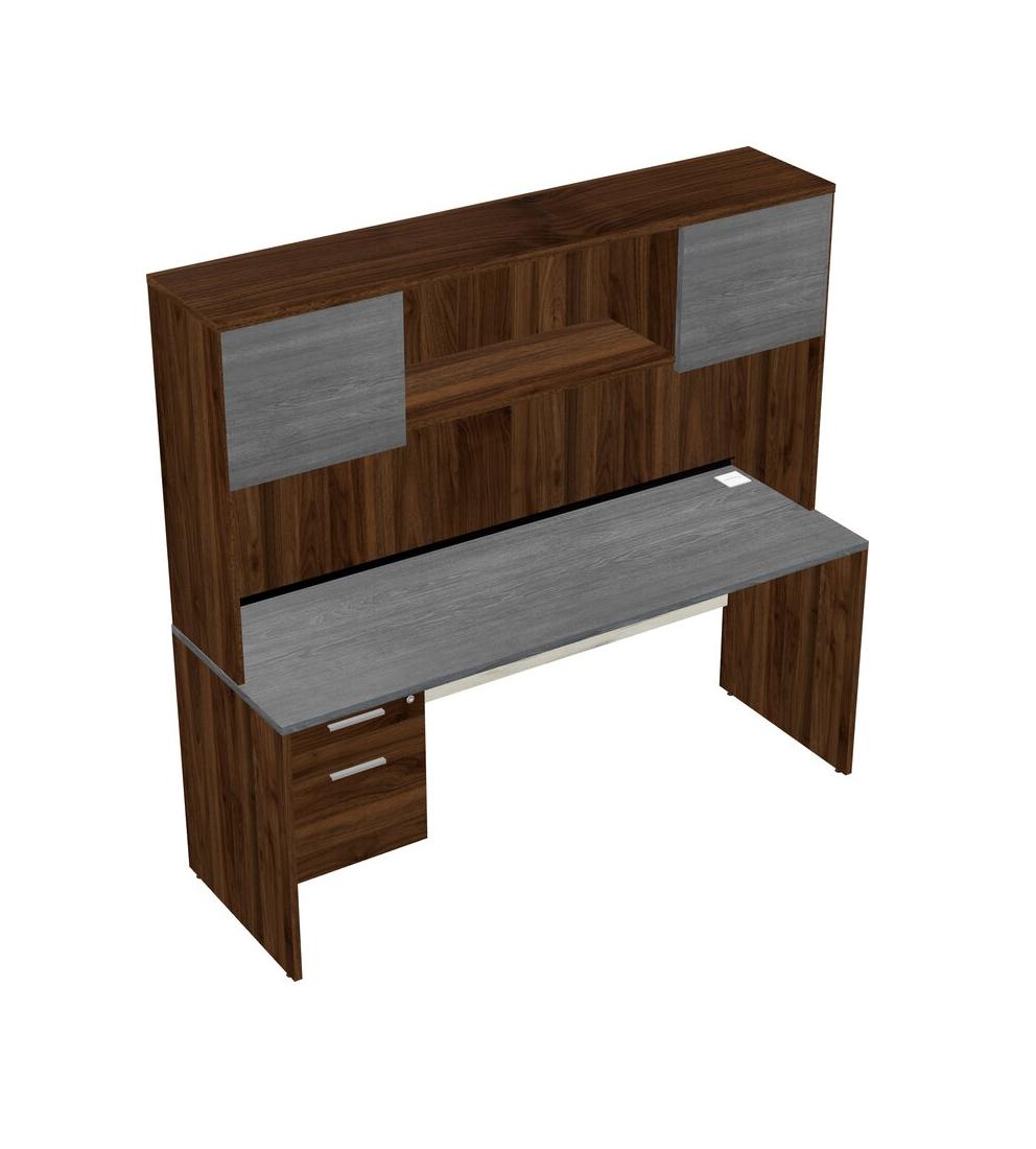 Grey Rectangular Office Desk Plus Columbia Walnut Hanging Drawers And Columbia Walnut Hutch