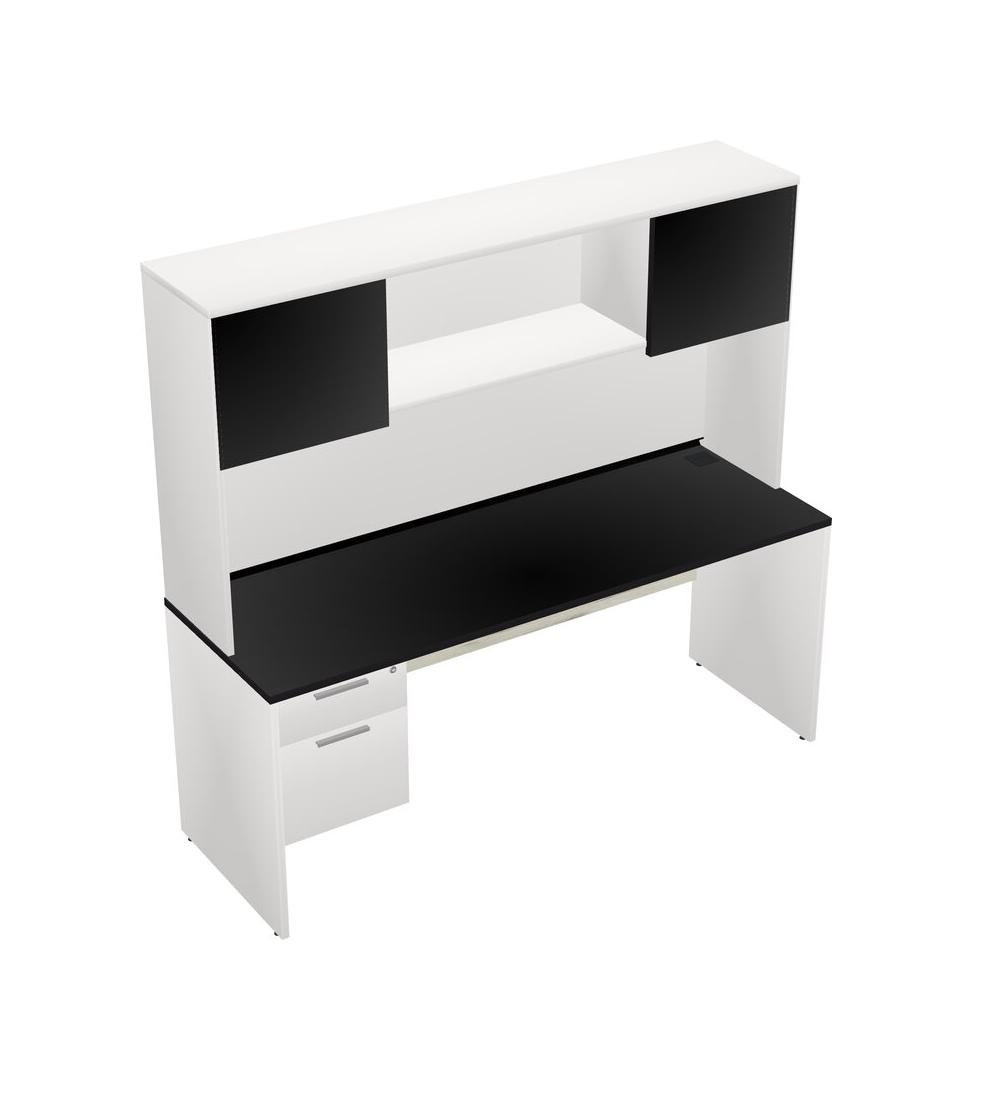 Black Rectangular Office Desk Plus White Hanging Drawers And White Hutch