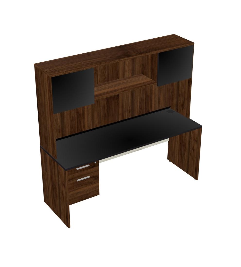 Black Rectangular Office Desk Plus Columbia Walnut Hanging Drawers And Columbia Walnut Hutch