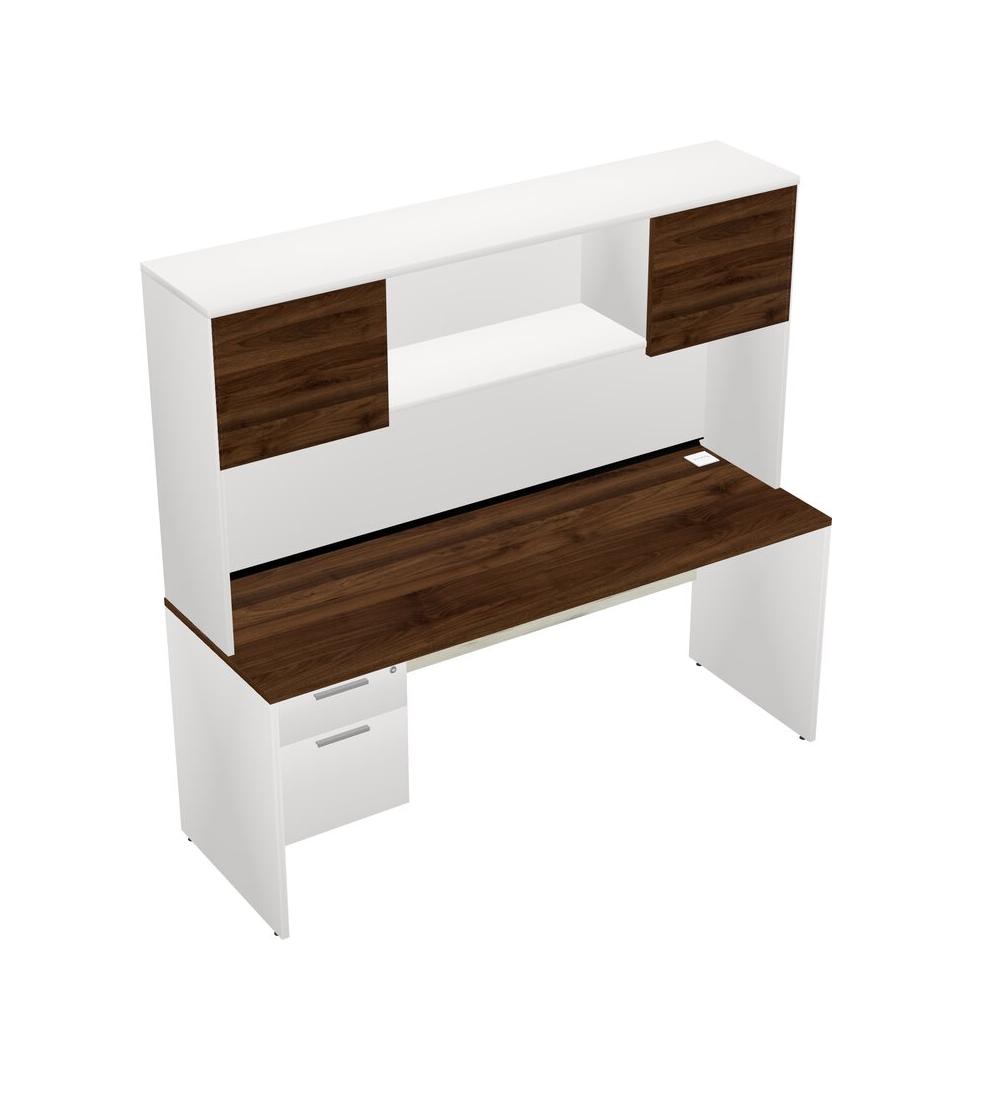 Columbia Walnut Rectangular Office Desk Plus White Hanging Drawers And White Hutch