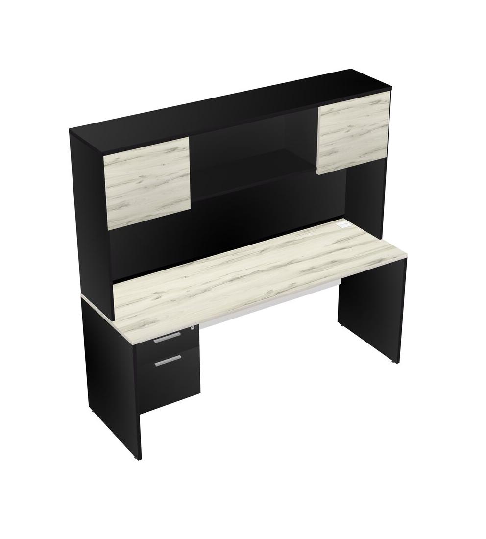 Heinne Holz Rectangular Office Desk Plus Black Hanging Drawers And Black Hutch