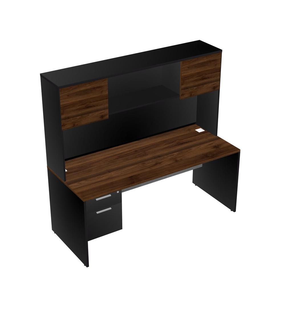 Columbia Walnut Rectangular Office Desk Plus Black Hanging Drawers And Black Hutch
