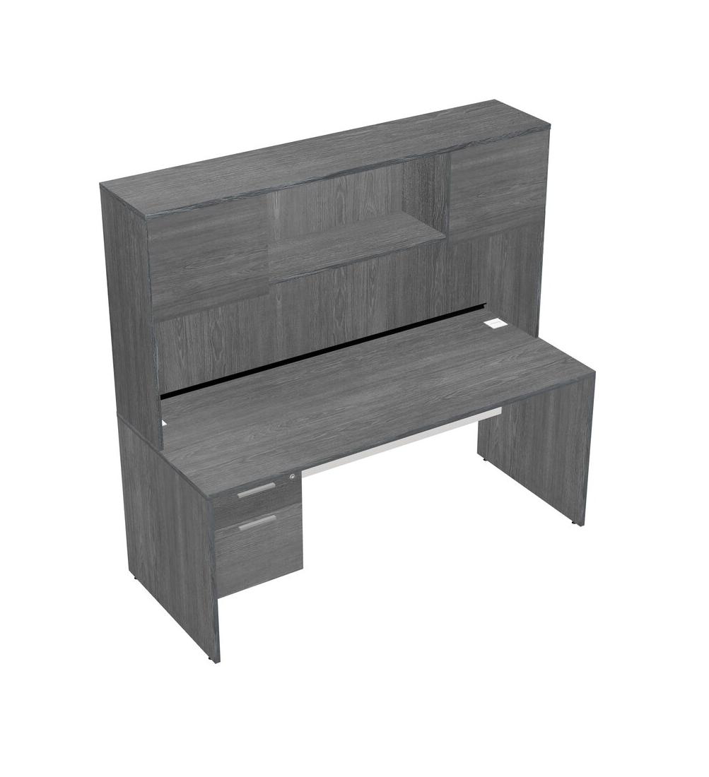 Grey Rectangular Office Desk Plus Grey Hanging Drawers And Grey Hutch