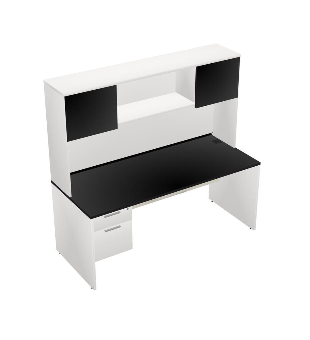 Black Rectangular Office Desk Plus White Hanging Drawers And White Hutch