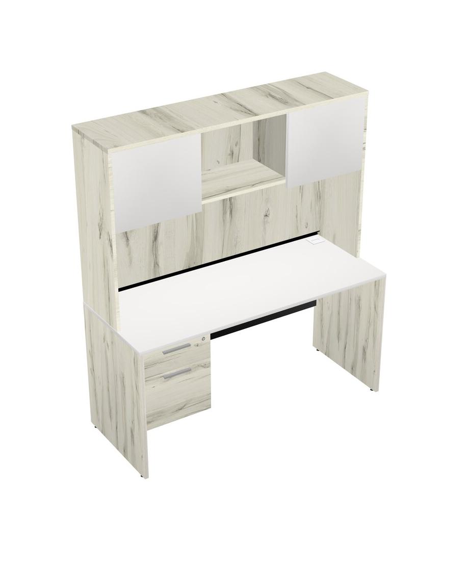 White Rectangular Office Desk Plus Heinne Holz Hanging Drawers And Heinne Holz Hutch