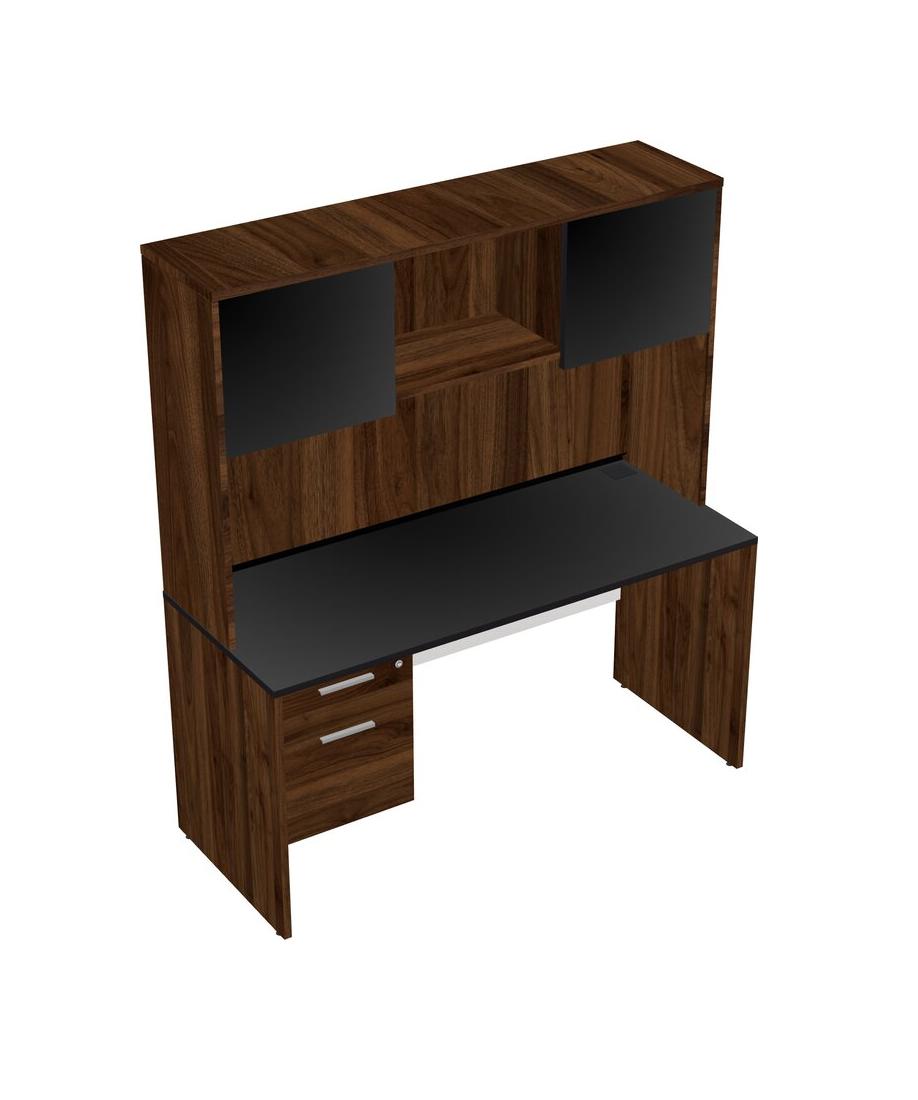 Black Rectangular Office Desk Plus Columbia Walnut Hanging Drawers And Columbia Walnut Hutch