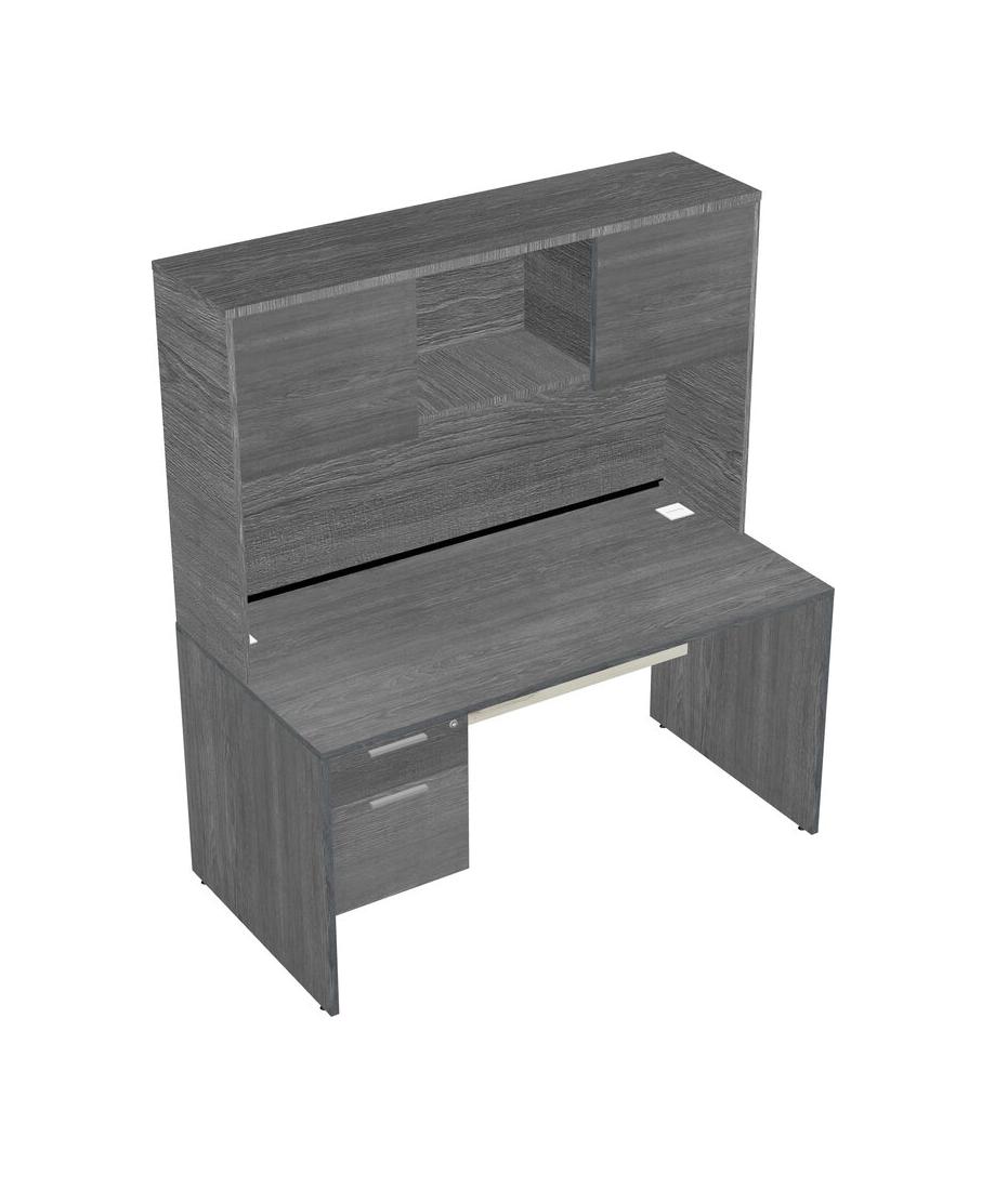 Grey Rectangular Office Desk Plus Grey Hanging Drawers And Grey Hutch