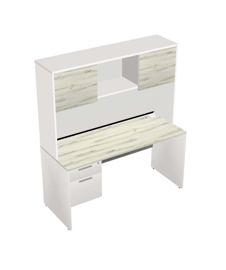 Heinne Holz Rectangular Office Desk Plus White Hanging Drawers And White Hutch