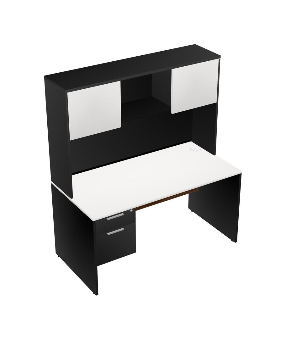 White Rectangular Office Desk Plus Black Hanging Drawers And Black Hutch
