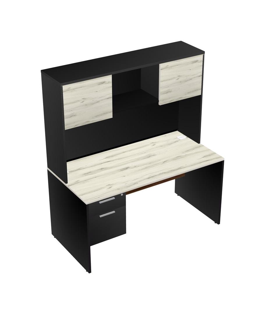 Heinne Holz Rectangular Office Desk Plus Black Hanging Drawers And Black Hutch
