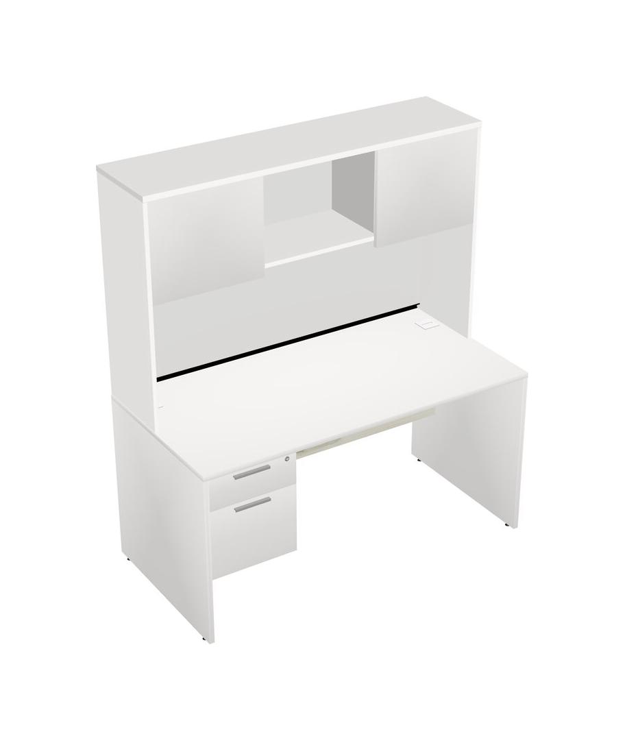 White Rectangular Office Desk Plus White Hanging Drawers And White Hutch
