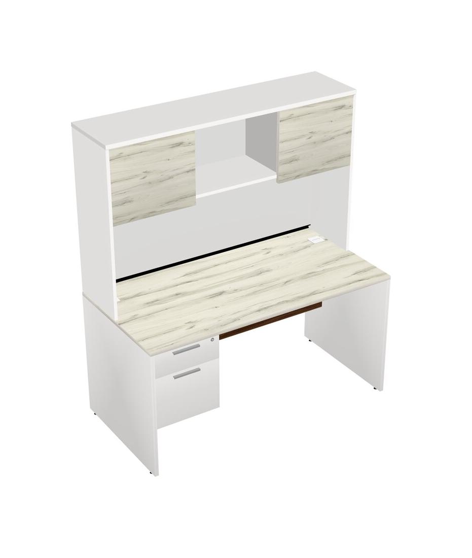 Heinne Holz Rectangular Office Desk Plus White Hanging Drawers And White Hutch