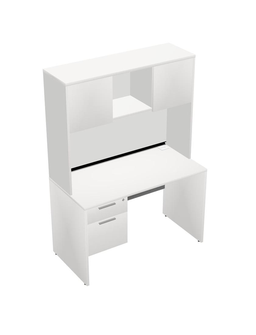 White Rectangular Office Desk Plus White Hanging Drawers And White Hutch