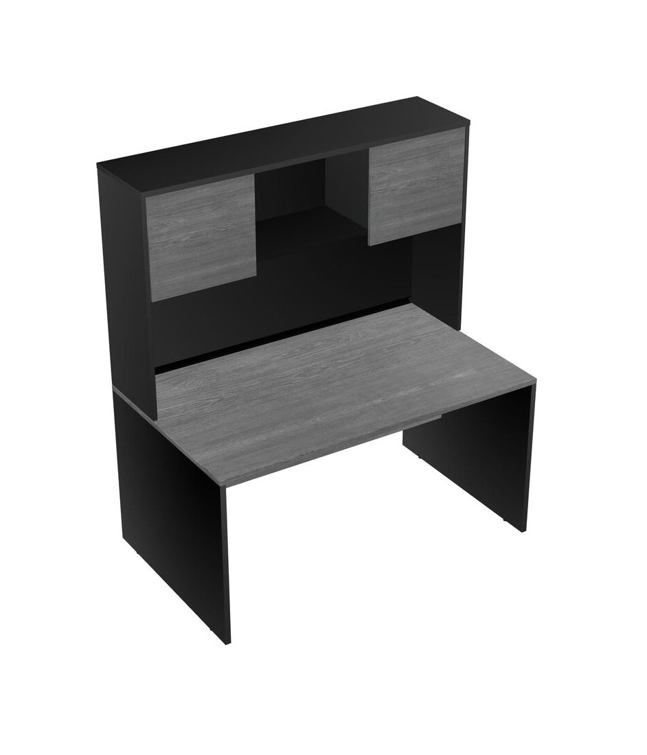 Grey Rectangular Office Desk And Black Hutch