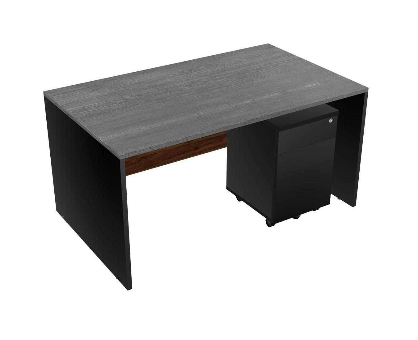Grey Rectangular Office Desk Plus Black Wooden Mobile Drawers