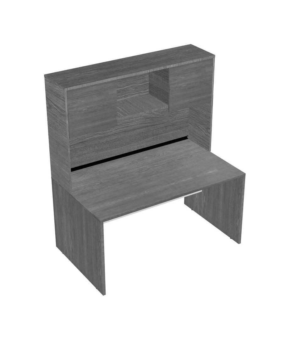 Grey Rectangular Office Desk And Grey Hutch