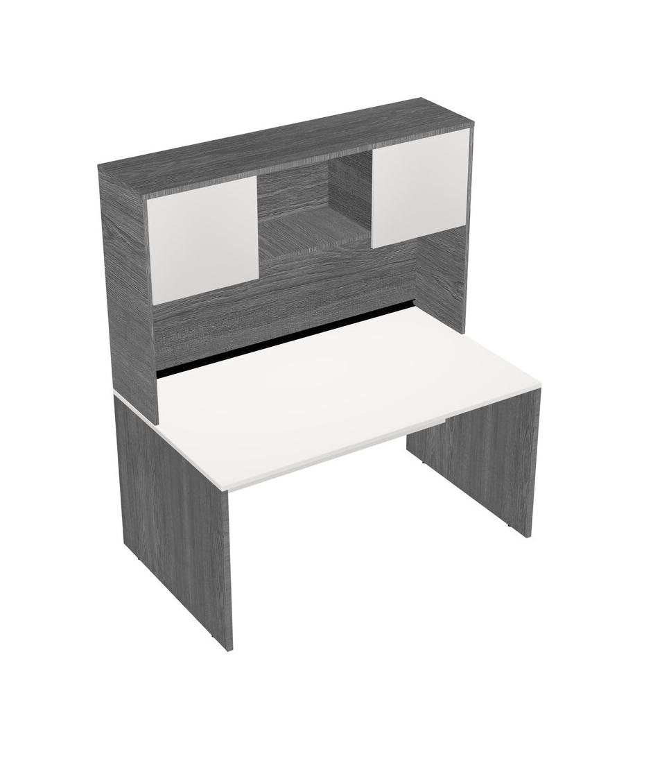 White Rectangular Office Desk And Grey Hutch