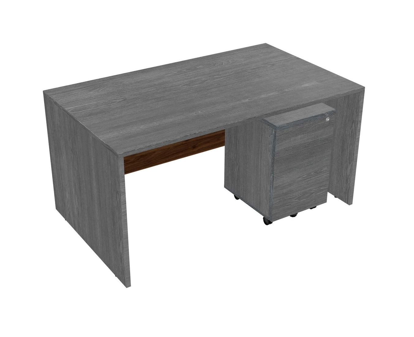 Grey Rectangular Office Desk Plus Grey Wooden Mobile Drawers