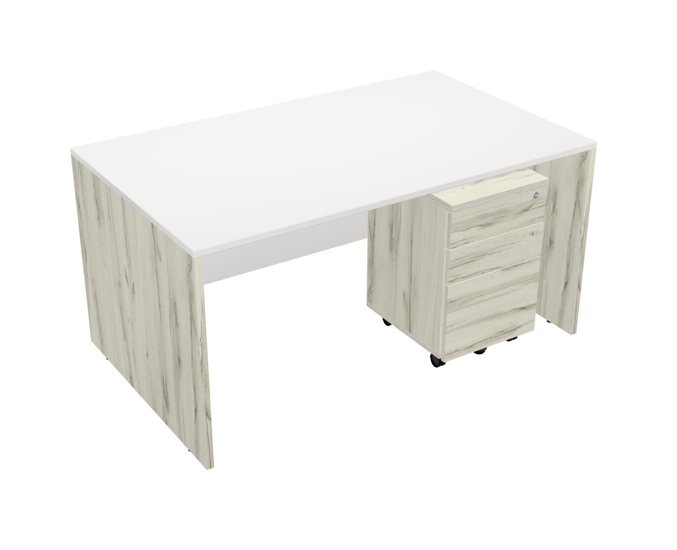 White Rectangular Office Desk Plus Heinne Holz Wooden Mobile Drawers