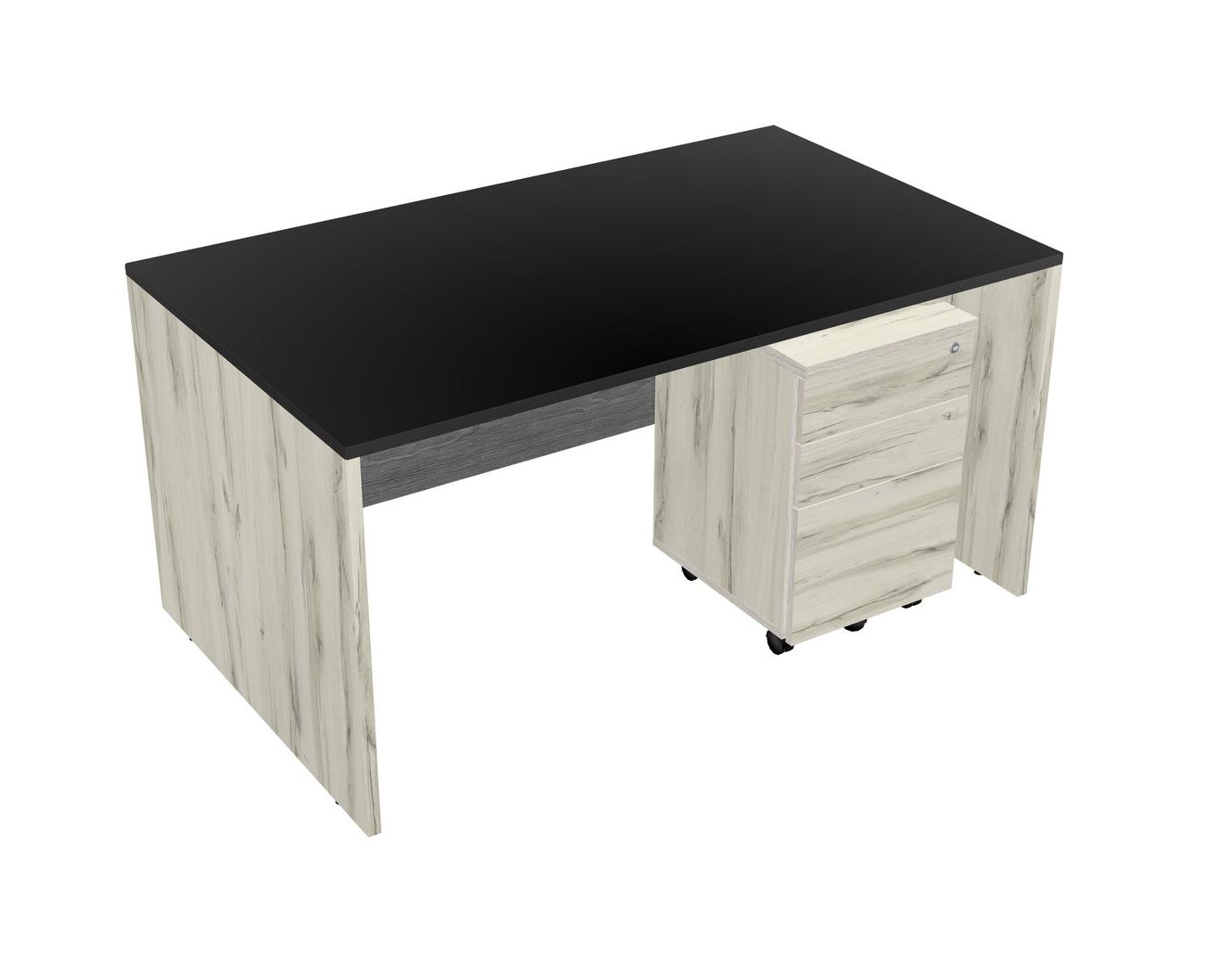 Black Rectangular Office Desk Plus Heinne Holz Wooden Mobile Drawers