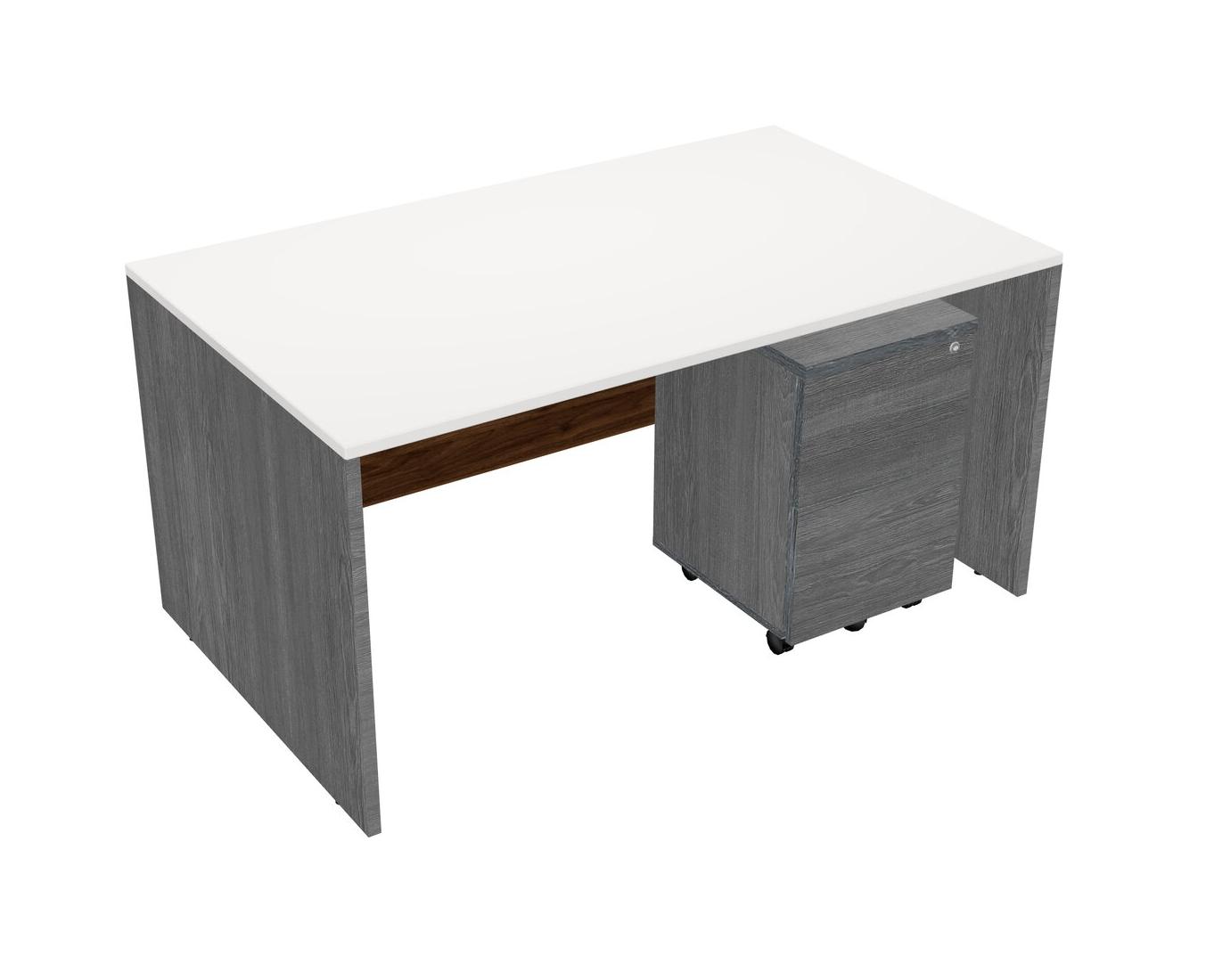 White Rectangular Office Desk Plus Grey Wooden Mobile Drawers