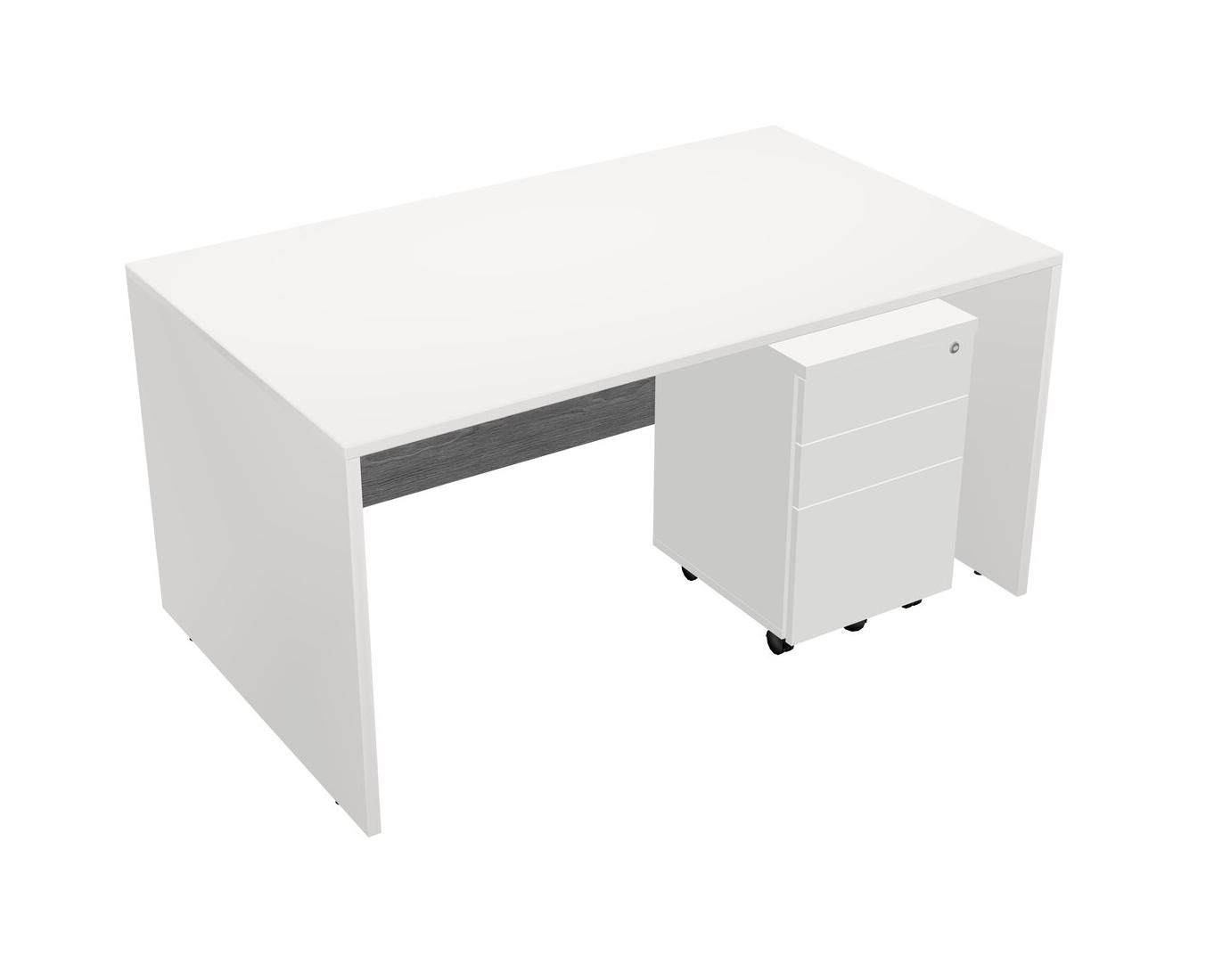 White Rectangular Office Desk Plus White Wooden Mobile Drawers