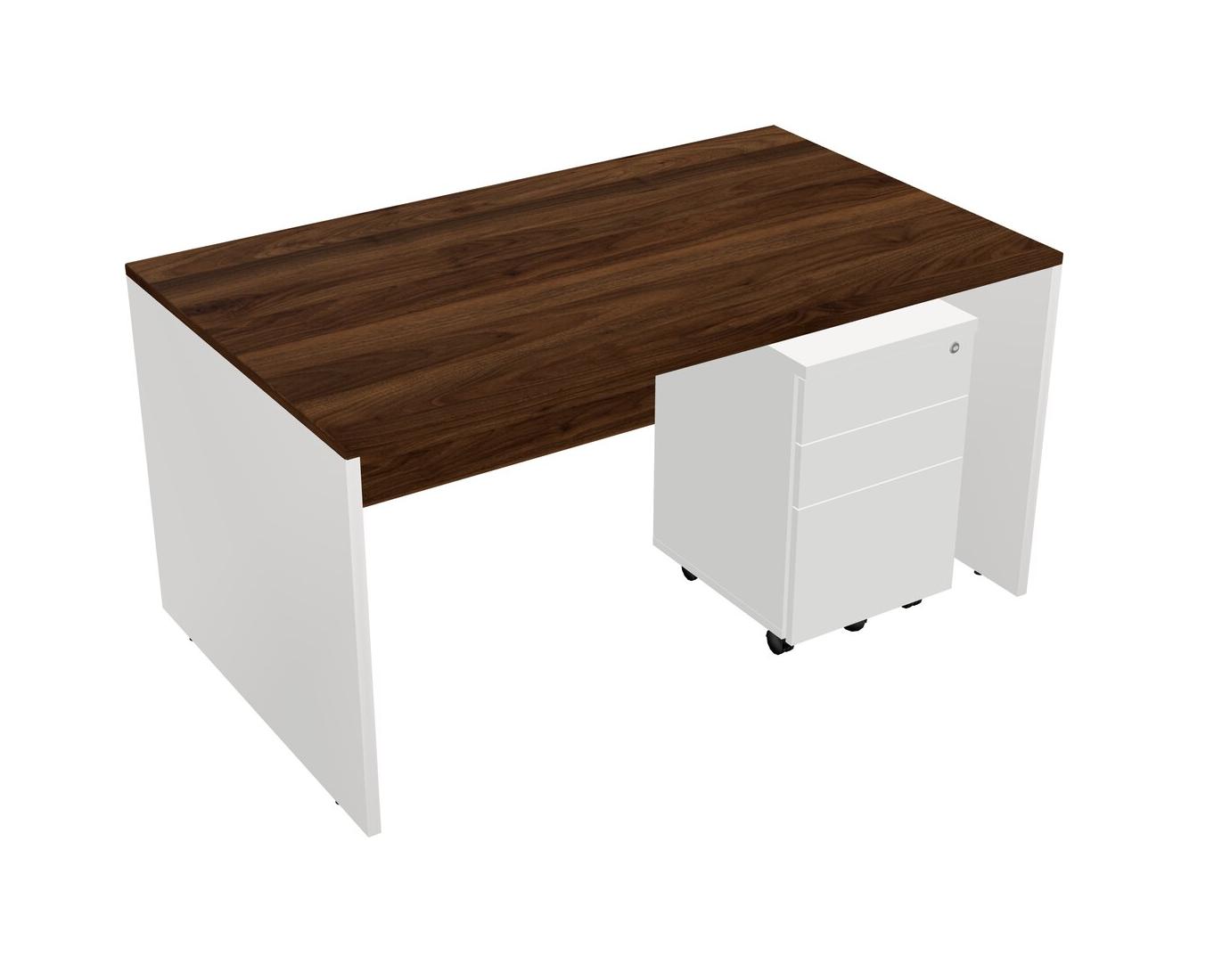 Columbia Walnut Rectangular Office Desk Plus White Wooden Mobile Drawers