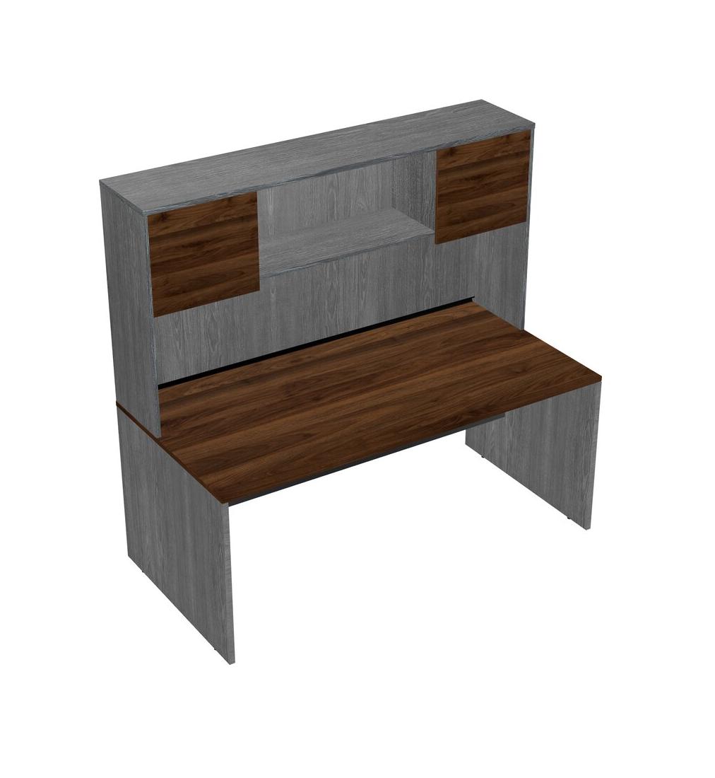 Columbia Walnut Rectangular Office Desk And Grey Hutch