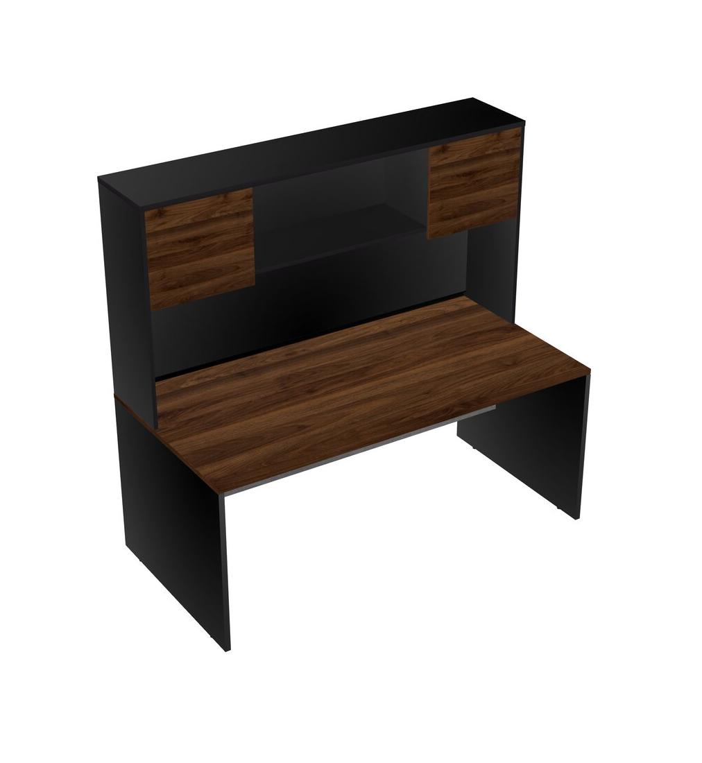 Columbia Walnut Rectangular Office Desk And Black Hutch