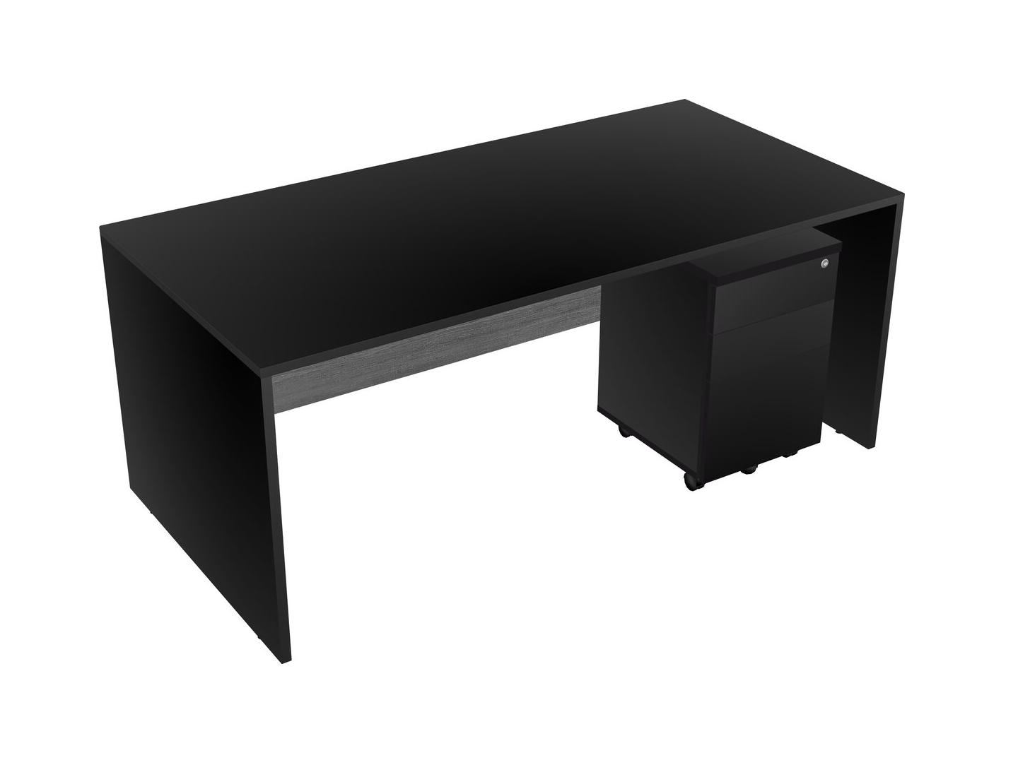 Black Rectangular Office Desk Plus Black Wooden Mobile Drawers