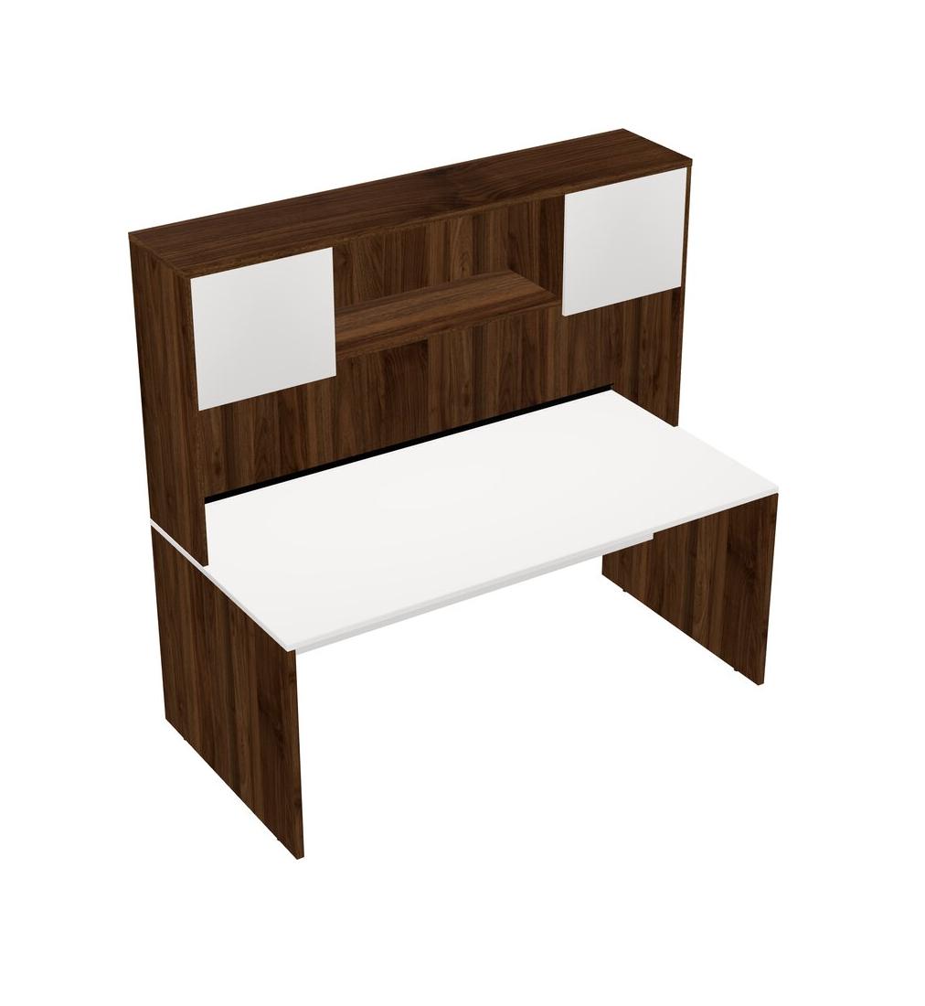 White Rectangular Office Desk And Columbia Walnut Hutch