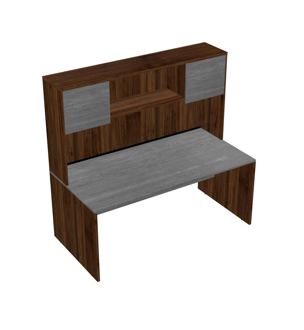 Grey Rectangular Office Desk And Columbia Walnut Hutch
