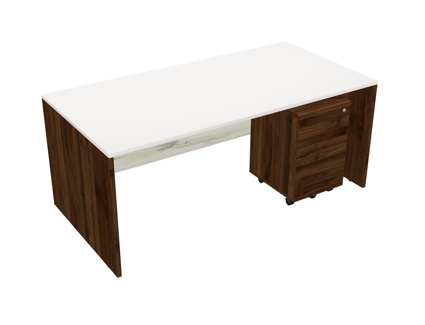 White Rectangular Office Desk Plus Columbia Walnut Wooden Mobile Drawers
