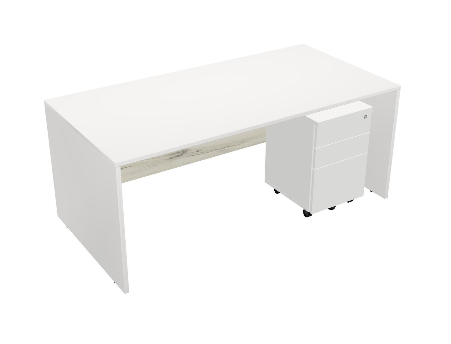 White Rectangular Office Desk Plus White Wooden Mobile Drawers