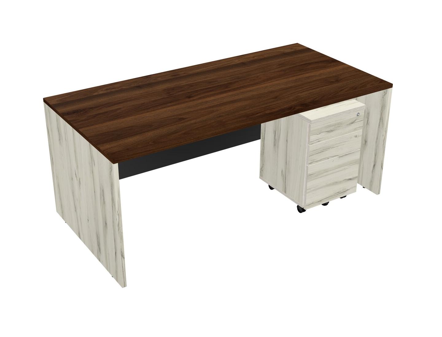 Columbia Walnut Rectangular Office Desk Plus Heinne Holz Wooden Mobile Drawers
