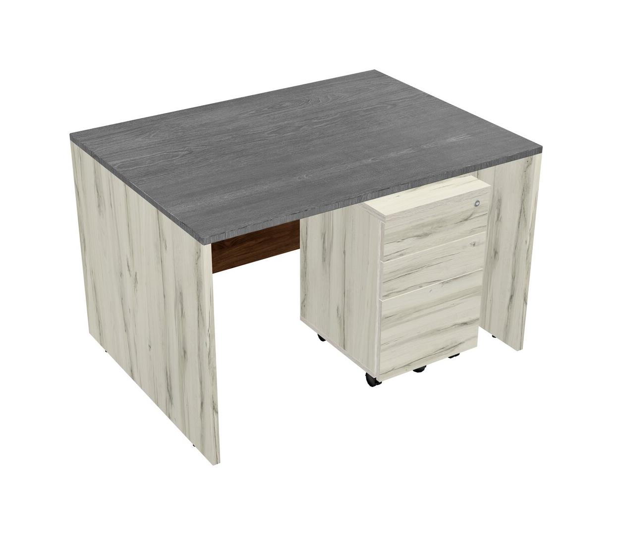Grey Rectangular Office Desk Plus Heinne Holz Wooden Mobile Drawers