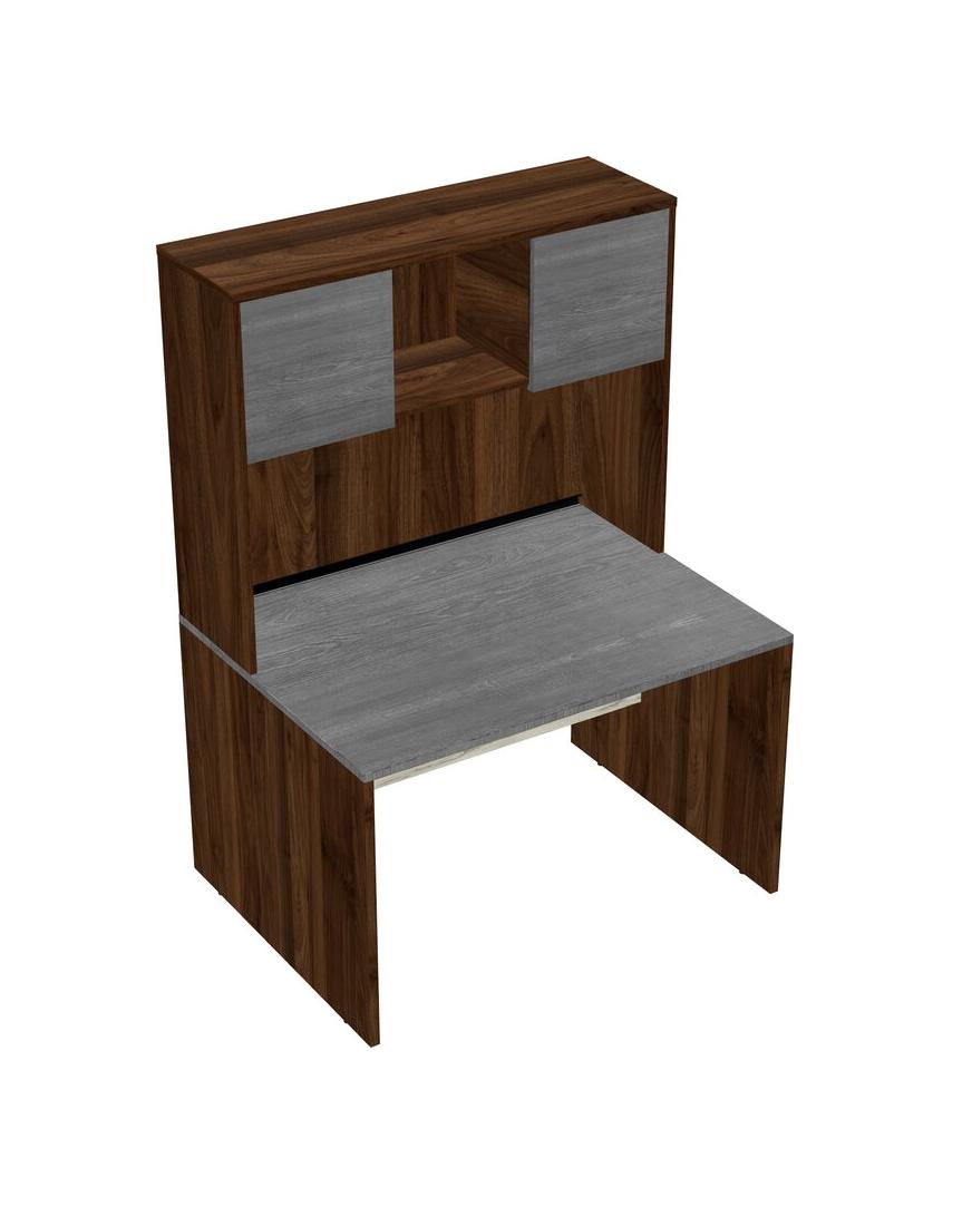 Grey Rectangular Office Desk And Columbia Walnut Hutch