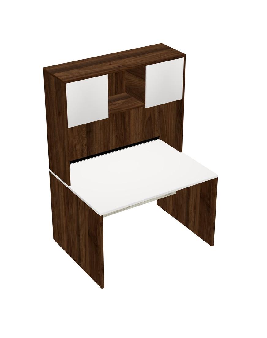 White Rectangular Office Desk And Columbia Walnut Hutch