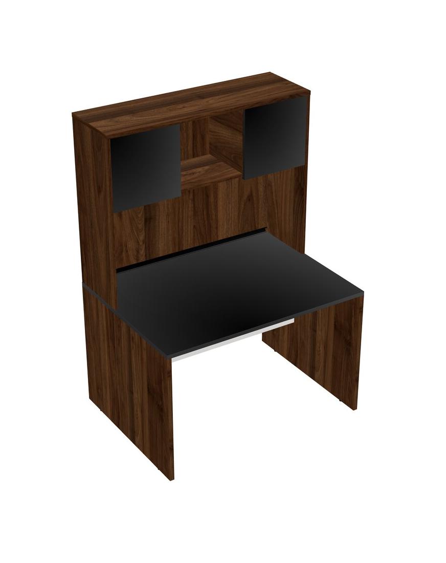 Black Rectangular Office Desk And Columbia Walnut Hutch