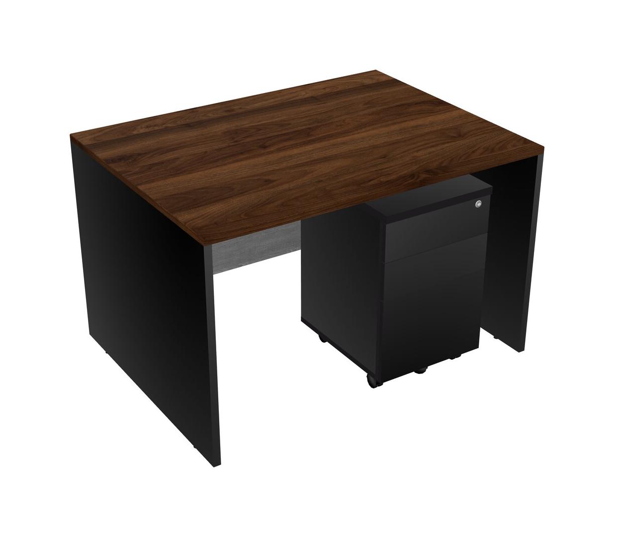 Columbia Walnut Rectangular Office Desk Plus Black Wooden Mobile Drawers