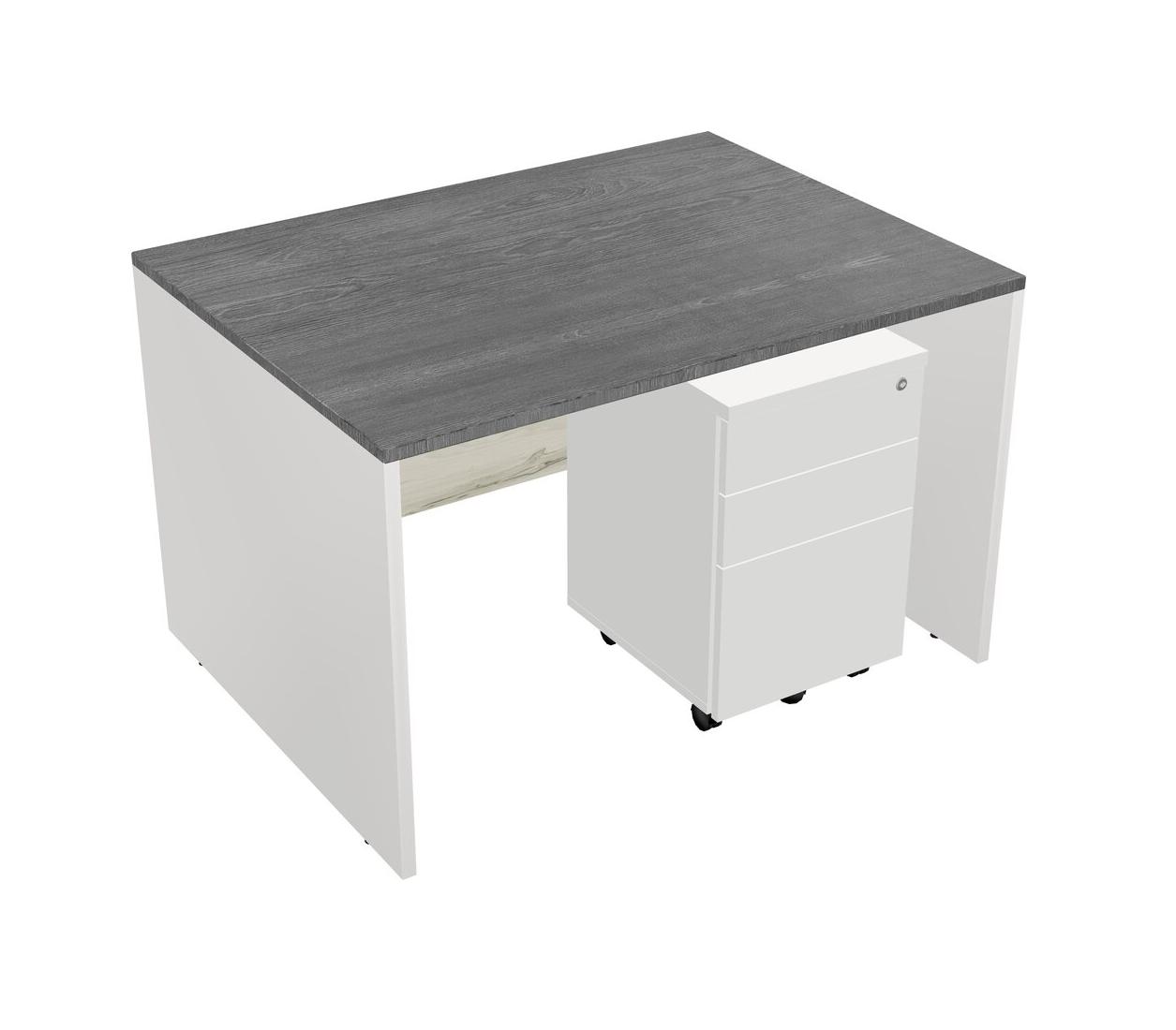 Grey Rectangular Office Desk Plus White Wooden Mobile Drawers