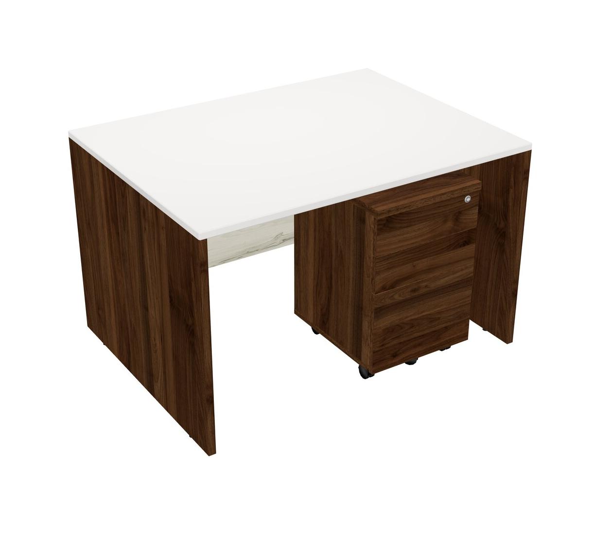 White Rectangular Office Desk Plus Columbia Walnut Wooden Mobile Drawers