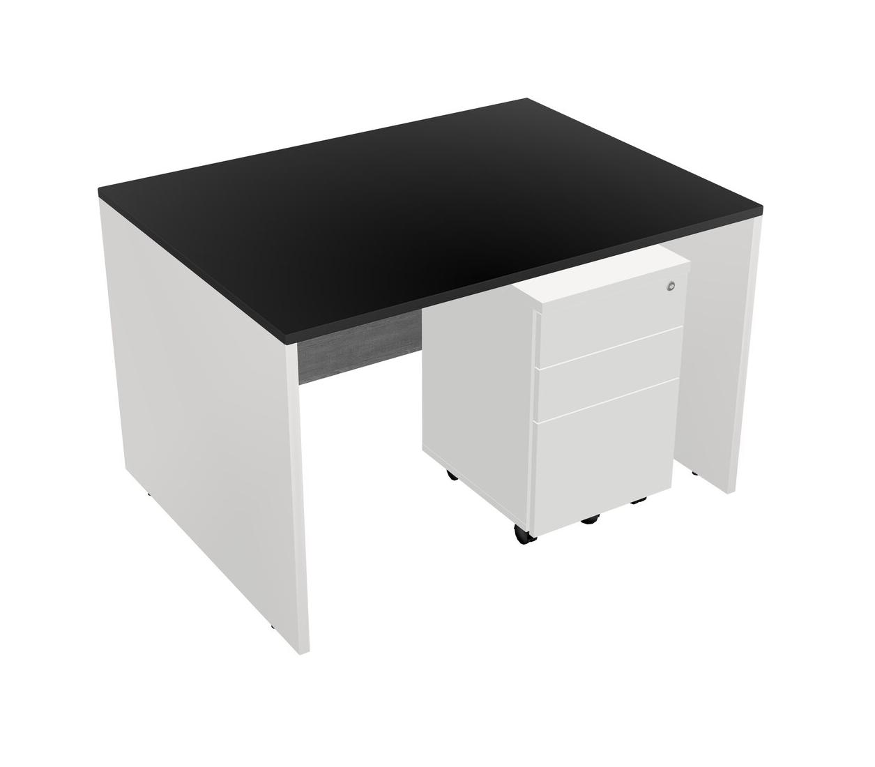 Black Rectangular Office Desk Plus White Wooden Mobile Drawers
