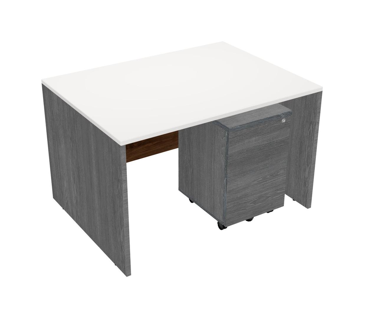 White Rectangular Office Desk Plus Grey Wooden Mobile Drawers