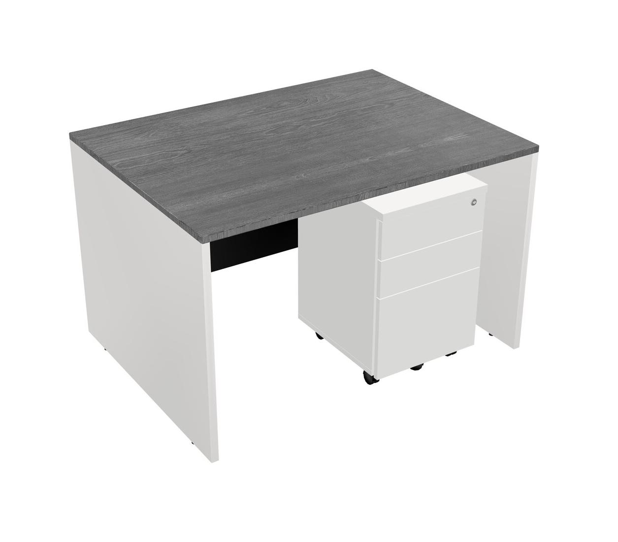 Grey Rectangular Office Desk Plus White Wooden Mobile Drawers