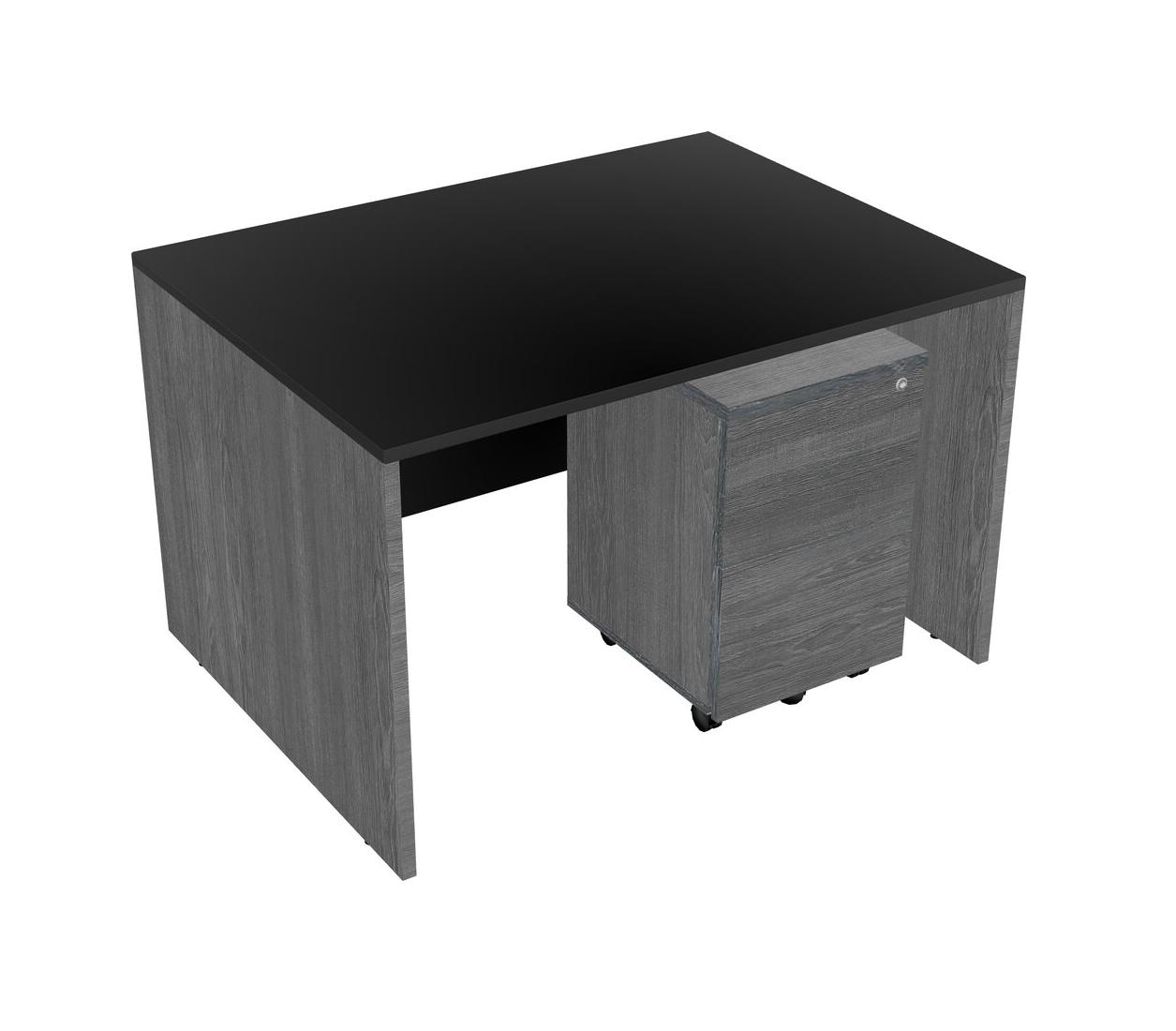 Black Rectangular Office Desk Plus Grey Wooden Mobile Drawers