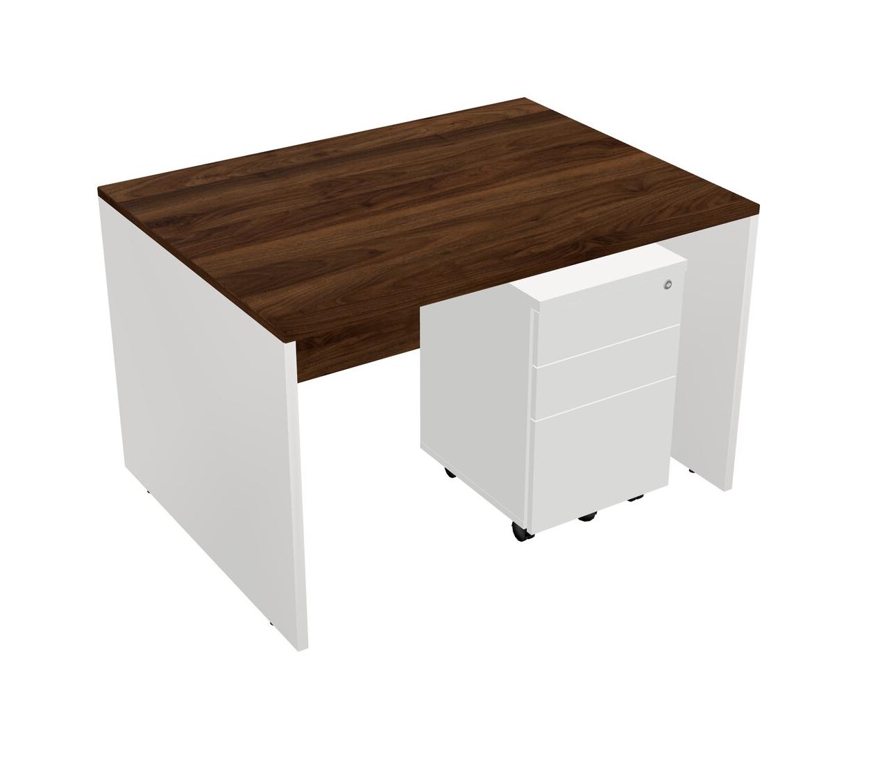 Columbia Walnut Rectangular Office Desk Plus White Wooden Mobile Drawers