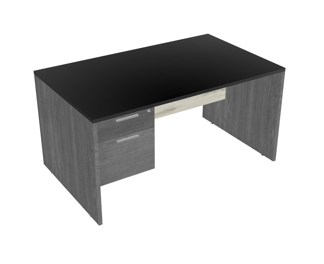 Black Rectangular Office Desk Plus Grey Hanging Drawers