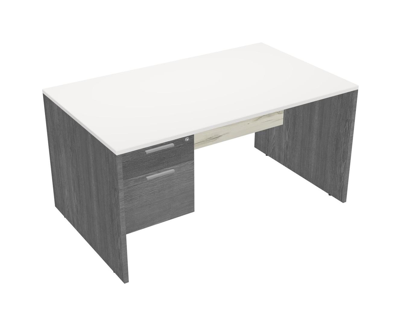 White Rectangular Office Desk Plus Grey Hanging Drawers